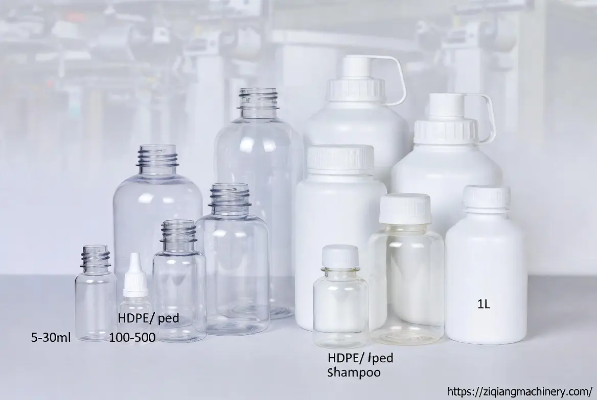 Ultra-precision small bottles (5ml–30ml) with pharmaceutical-grade neck tolerances — a specialty of Ziqiang's ZQ40 and ZQ60 injection blow molding machines.Which Industries Use PE Blowing Machines? Full Application Guide